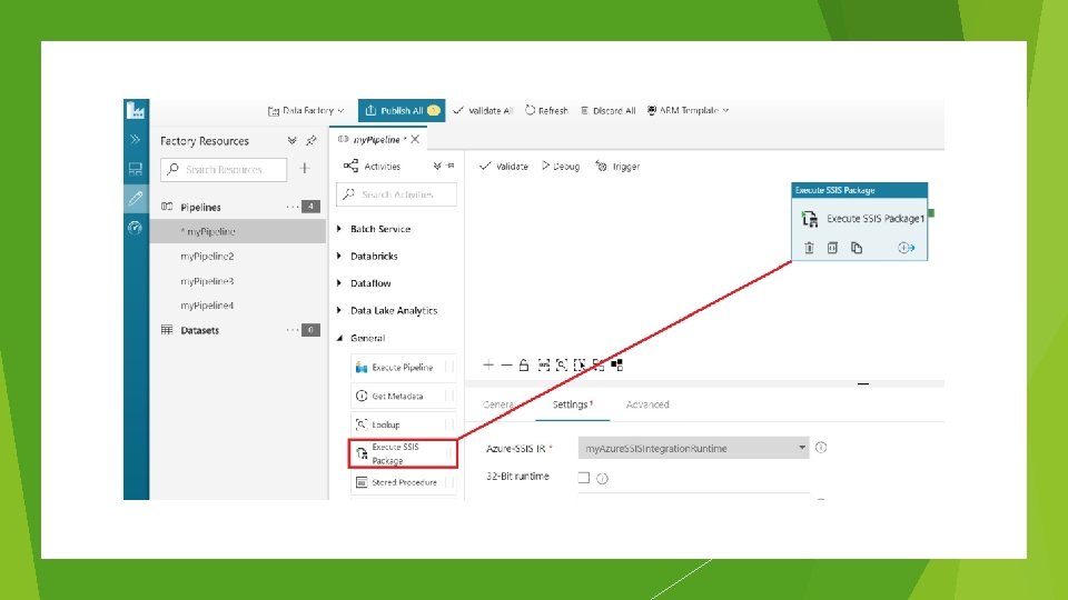 Monitor Pipelines in SSMS Schedule SSIS package executions on Azure-SSIS IR Triggering runs of ADF pipelines that contain Execute SSIS Package activities. Modernize your ETL (Extract – Transform – Load) workflows Group SSIS activities with other activities such as Web activities with webhooks splicing/injecting built-in SSIS connectors, tasks, and data transformations within ADF pipelines custom/Open Source/3 rd party components
