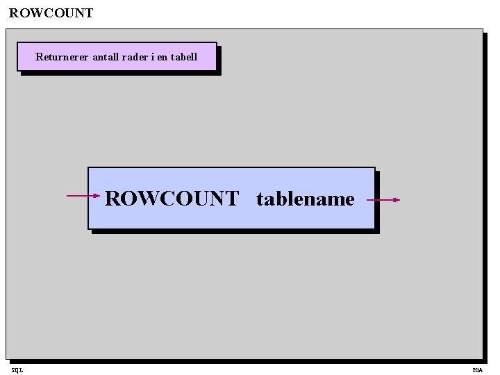 ROWCOUNT Returnerer antall rader i en tabell ROWCOUNT tablename SQL Hi. A