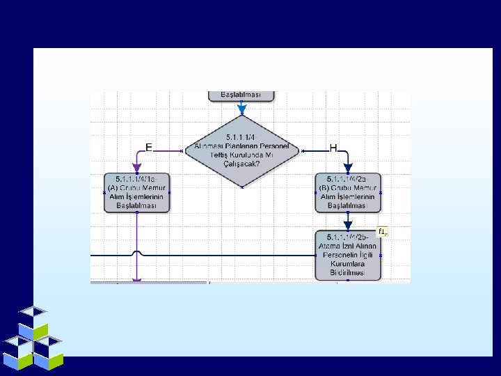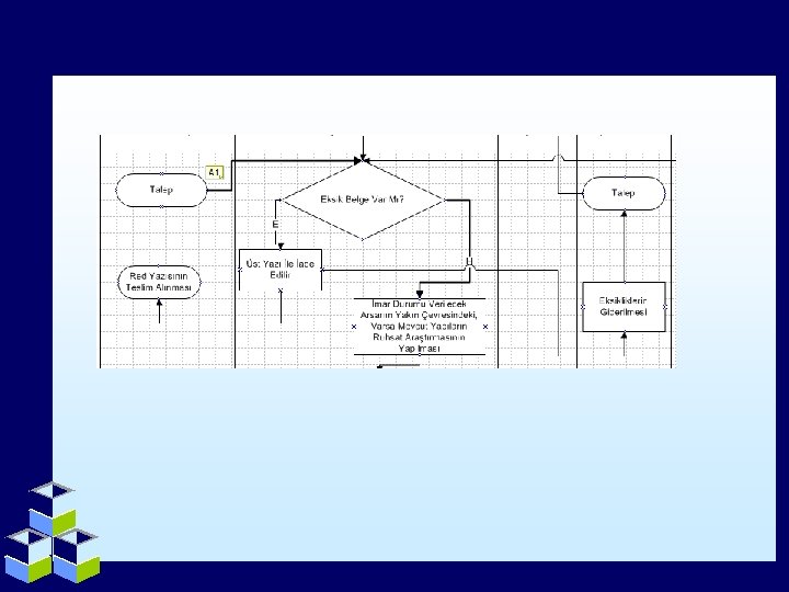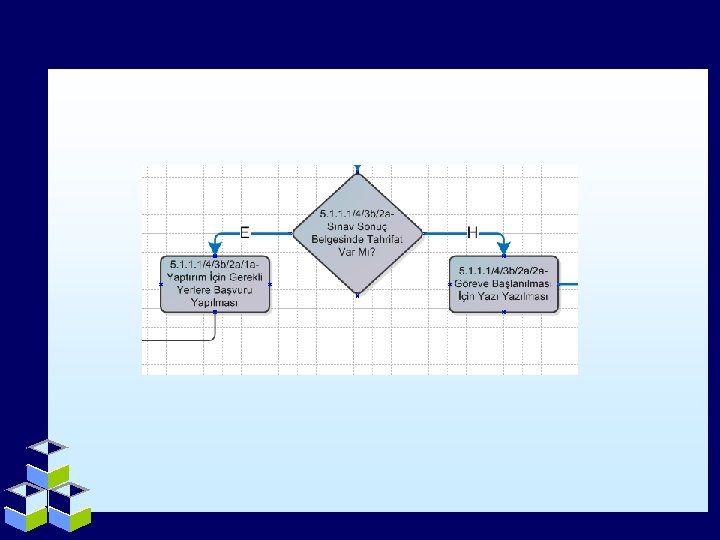Karar ve Kontrol İşlemleri • Sorgulama, karar ve kontrol işlemlerini ifade etmek için resimdeki gösterim kullanılır. • Genelde soru cümleleri barındırırlar. • Bu işlem iki yönlüdür. Karar sonucu verilen yanıt işlemin takip yönünü belirler.