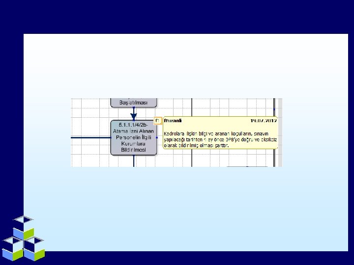 Açıklama Ekleme «Gözden Geçir» menüsünden, yeni açıklama tıklandığında işlem adımı için gerekli bilgilendirme kutusu gelmektedir. Açıklama kutusuna metin girildiğinde, sürüklenerek işlem adımıyla ilişkilendirilmektedir.