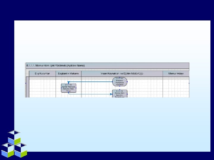 SÜREÇ MODELLEME NEDİR? “Organizasyonel birlikte çalışabilirlik kapsamında, kurumlara ait iş süreçlerinin ilişkili diğer kurumları da içerecek şekilde modellenmesiyle ilgilenilir ve kurumların amaçları ile teknik altyapıyı şekillendiren uygulama ve sistemler arasında bütünlük, diğer bir ifadeyle, paylaşılan bilginin daha etkin olarak değişimini sağlayacak şekilde oluşturulmuş iş süreçleri ve buna uygun kurumsal yapılanma hedeflenir. Ayrıca, süreçlerin yeniden mühendisliği, kurum içi ve kurumlar arasında iş akış yönetimi, süreç ve hizmetler için ihtiyaçların belirlenmesi gibi konuları içerir.