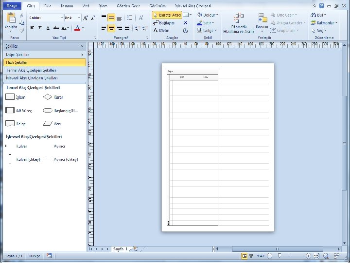 SÜREÇ MODELLEMEDE MICROSOFT VİSİO KULLANIMI Karmaşık bilgilerin görselleştirmesine, bilginin daha kolay araştırılmasına ve anlaşılmasına olanak sağlayarak, iletişimde kullanmanıza yardımcı olan bir grafik ve çizim uygulamasıdır. Visio ile, anlaşılması zor metin ve tabloları bir bakışta bilgileri açıklayan görsel diyagramlara dönüştürülebilmektedir. Süreç modelleme, inşaat ve mimari, kullanıcı arabirimi tasarımı, insan kaynakları yönetimi, proje yönetimi ve diğerleri dahil olmak üzere çeşitli diyagram ihtiyaçları için Visio modern şekiller ve şablonlar sağlamaktadır. İş süreçlerini görselleştirmek ve akıcılık kazandırmak, projeleri ve kaynakları izlemek, kuruluş şeması çizmek, ağ haritaları oluşturmak, inşaat alanlarını diyagrama dökmek ve sistemleri en iyi duruma getirmek için kullanabileceğiniz çok çeşitli şablonlar (iş süreci akış çizelgeleri, ağ diyagramları, iş akışı diyagramları, veritabanı modelleri ve yazılım diyagramları gibi) sağlamak için kullanılır.