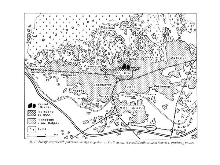 Historijsko-geografski razvoj Zagreba • na prostoru vrlo povoljnom za naseljavanje: na S je gorski hrbat Medvednice, a na J nizina Save