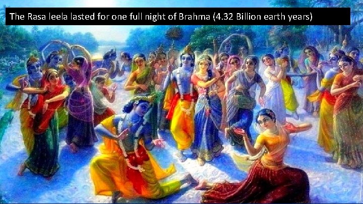 The Rasa leela lasted for one full night of Brahma (4. 32 Billion earth years) 42
