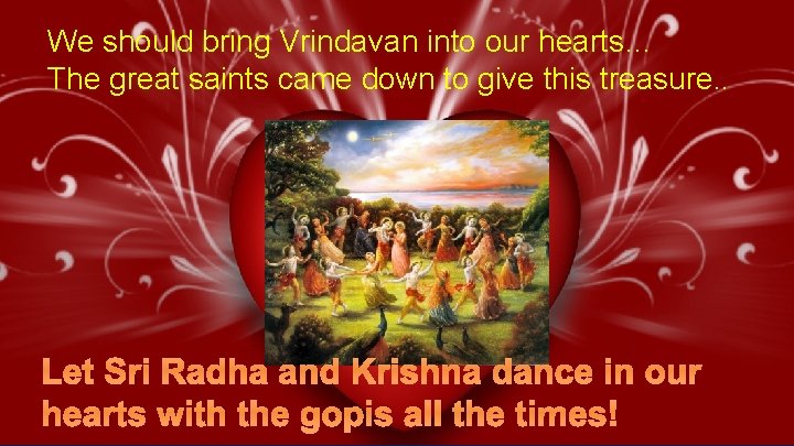 We should bring Vrindavan into our hearts… The great saints came down to give this treasure. . Let Sri Radha and Krishna dance in our hearts with the gopis all the times! 44