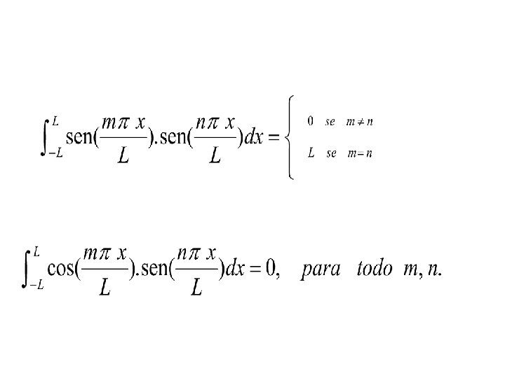As funções sen [(n x)/T] e cos [(n x)/T], n = 1, 2, . . . formam um conjunto ortogonal de funções no intervalo -L x L. Senão vejamos