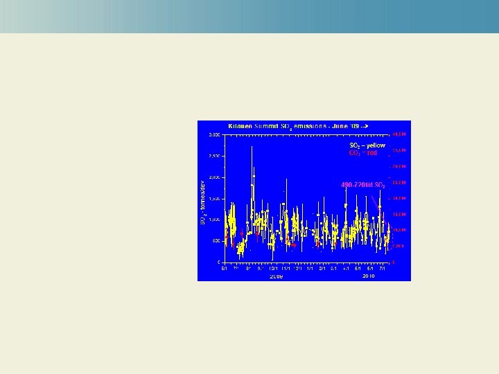 Volcano Monitoring Techniques Gas Data Plume of gas at Halema’u Crater on July 25, 2010 SO 2 concentrations at a gas-monitoring station on the south rim of Halema’u Crater since July 22, 2010.