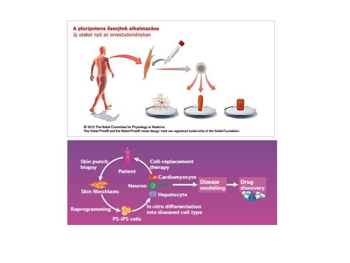 Őssejtek alkalmazása a klinikumban - sejttranszplantáció Gyógyszerkutatás és toxicitási vizsgálatok Az egyedfejlődés és a génszabályozás kutatása Tenyésztett pluripotens őssejtek (embrionális vagy szöveti) Sejtek/szövetek terápiás céllal Csontvelő Idegsejtek Szívizom Az őssejtkutatás távlatai Pancreas sejtek