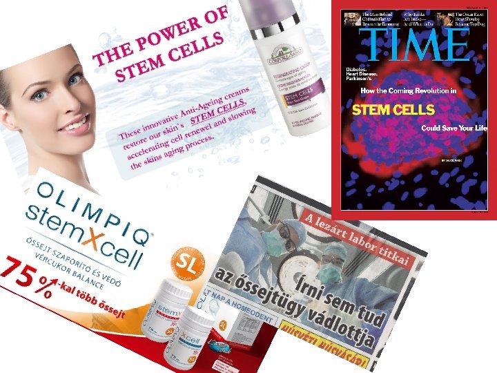 MIK AZ ŐSSEJTEK? • • Olyan sejtek, amelyek más sejtek létrehozására képesek és korlátlan osztódó képességgel rendelkeznek = ez az önmegújulás sejtpótlás, regeneráció Eredetük szerint lehetnek: embryonális vagy felnőtt őssejtek A bennük rejlő fejlődési potenciál alapján: toti-, pluri-, multi-, unipotens őssejtek Az őssejtek kiválaszthatók, életképesen megőrizhetők és a későbbiekben bármikor felhasználhatók esetleges betegségek kezelése céljából • Vannak tumor őssejtek is