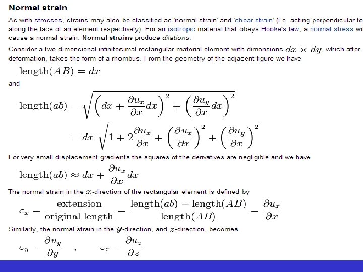 Yamulma(Deformasyon) (Strain) Elastik bir cisim gerilme etkisi altında kalırsa şekil ve boyutlarında deformasyon olur. İkiboyutlu (dx. dy) eşkenar dörtgen şeklinde