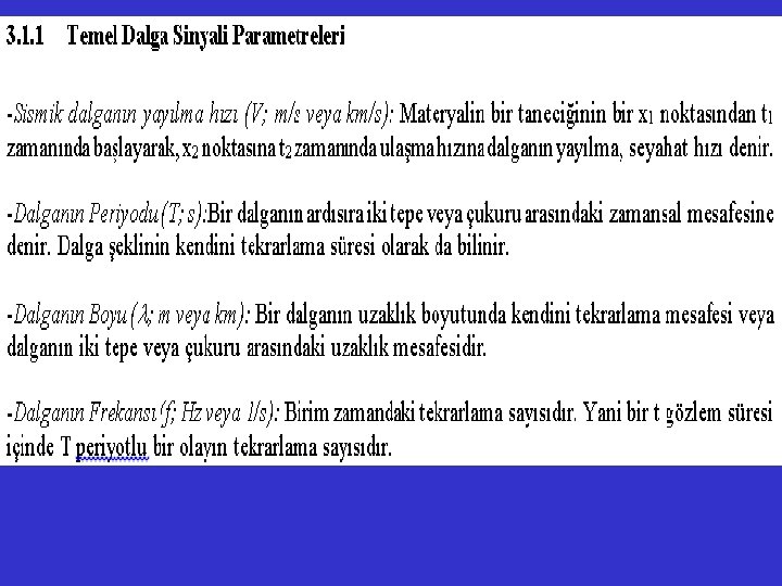 Sismik Dalga Tiplerinin Karşılaştırılması Cisim Dalgaları Yüzey Dalgaları * Küçük genlik * Kısa dalga boyu * Frekans bandı dardır * Daha hızlı seyahat * Büyük genlik ederler * Tüm depremlerde oluşurlar * Derin depremlerde * Uzun dalga boyu * Frekans bandı geniştir * Yavaş seyahat ederler oluşmazlar