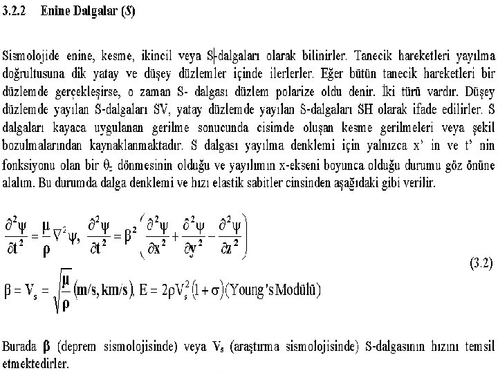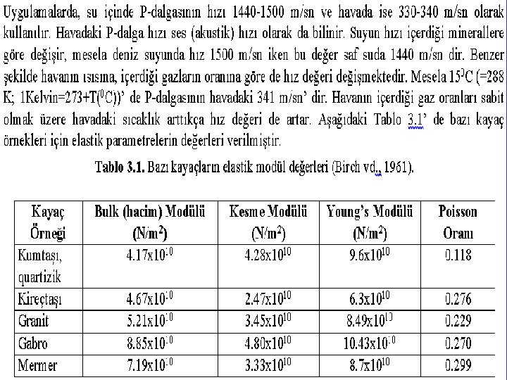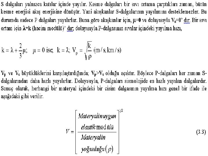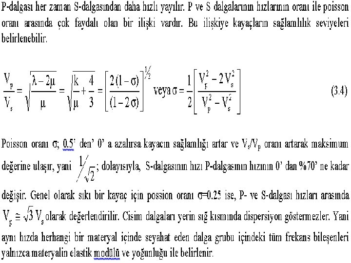 Kayaçlar için aşağıdaki ampirik ilişkiden bahsedilir. Vs = 0. 6 Vp