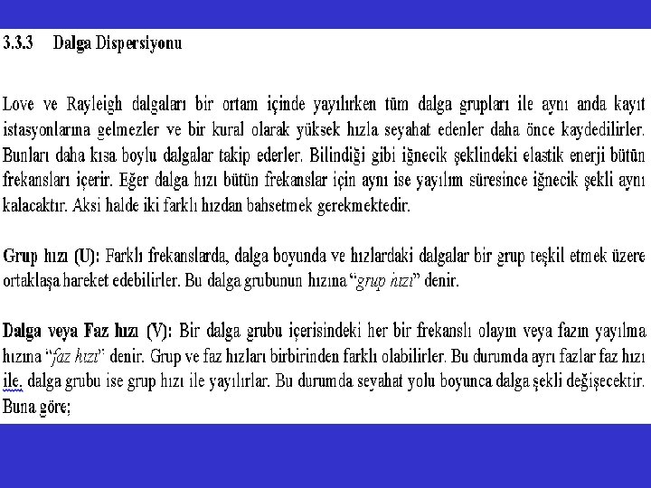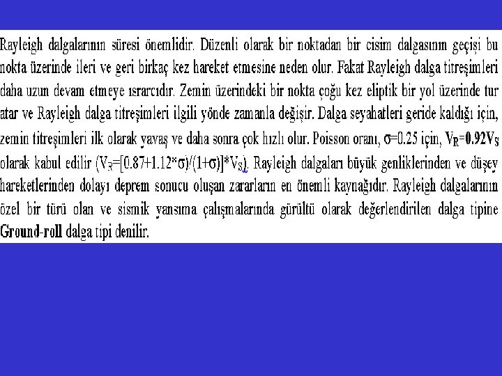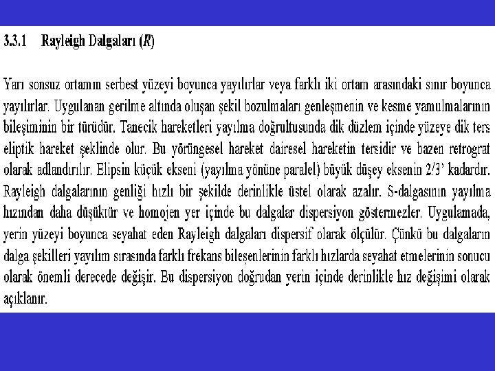 • Yüzey Dalgaları a) Rayleigh b) Love c) Stoneley Dalgaları d) Kanal Dalgaları
