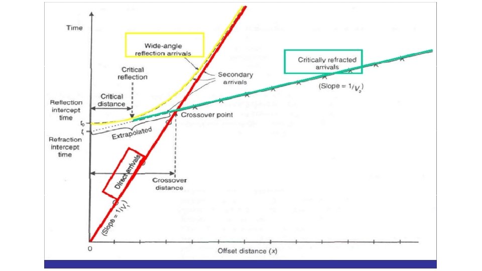 Eğimli Düzlem Arayüzey Modeli Ara yüzeyin eğimli olması durumunda yansıma kaynak-alıcı orta noktasında olmaz ve yansımalar eğim yukarı noktalardan gerçekleşir. Bu durumda yansıma hiperbolünün minimum noktası eğim yukarı kayar. Şekil 8. 3. Eğimli ara yüzey için yansıma seyahat zamanı.
