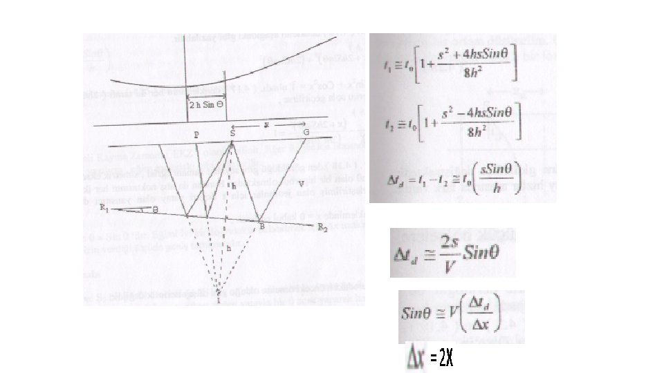 Şekil 7. 3’de verilen geometriye göre eğimli arayüzeyden yansıma seyahat zamanı SOR üçgeni için yazılan kosinüs teoreminden kolaylıkla elde edilebilir. (8. 3) Eğer SOR açısı (90 - ) yazılır ise arayüzey ters tarafa eğimli olur. Bu durumda seyahat zamanı, (8. 4) şeklinde elde edilir.