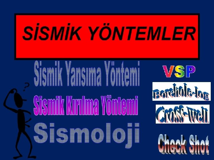 Sismik Yöntemlerin Uygulama Alanları • Enerji kaynak aramaları (Energy exploration): - En başta petrol ve doğal gaz (oil and natural gas on land offshore) - Jeotermal (geothermal) - Kömür (coal) - Gas hidratları (gas hydrates) - Kaya gazı (Shale gas) • Çeşitli yeraltı kaynak aramaları (Resource prospecting): - Maden (mining) - Yeraltı suyu (groundwater) - Endüstriyel hammaddeler (industrial raw materials) • Mühendislik uygulamalarında (Engineering applications) - Her türlü bayındırlık yapıları (baraj, tünel, liman, otoyol, hızlı demiryolu, metro, uçuş pisti, boru hatları, köprüler, yüksek binalar, nükleer santral v. b. ) - Bilimsel Araştırmalarda (Scientific research): Yerkabuğu araştırmalarında, aktif fayların haritalanmasında, Kuvaterner çalışmalarında