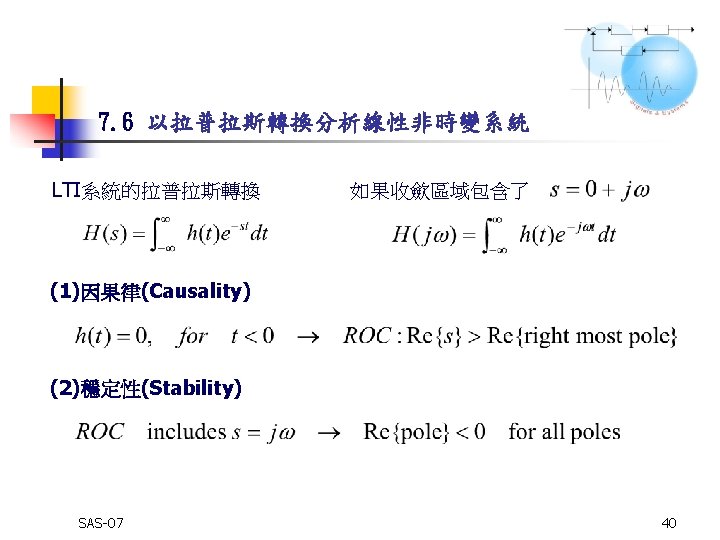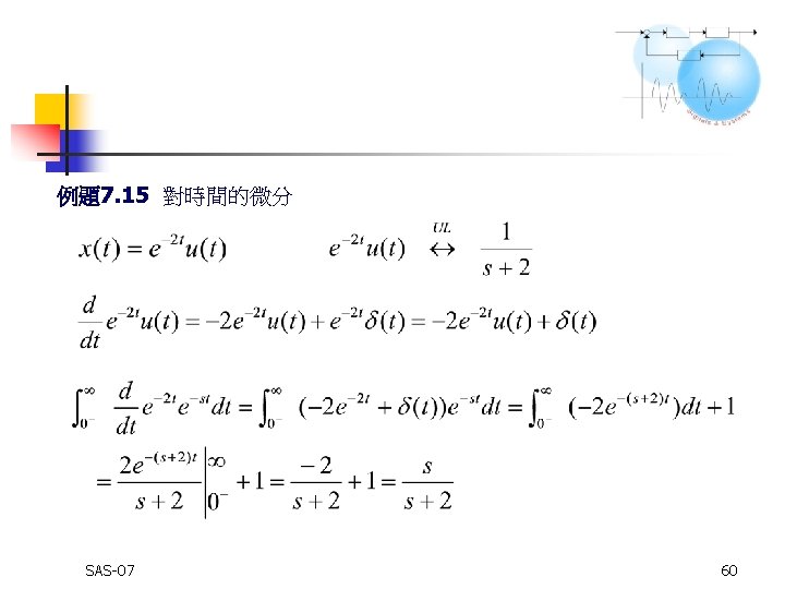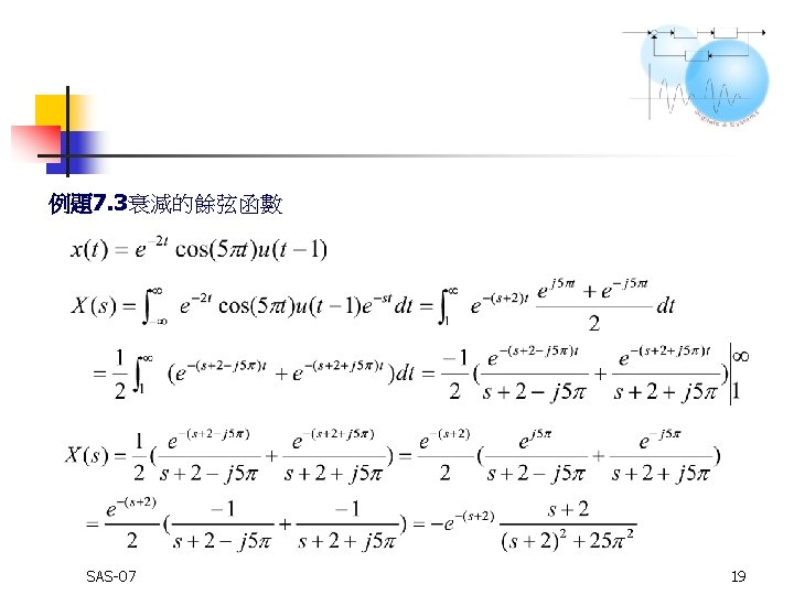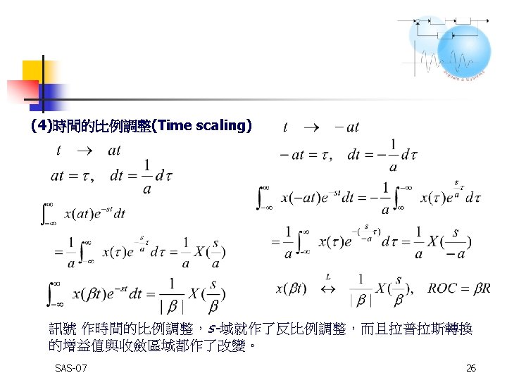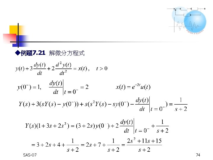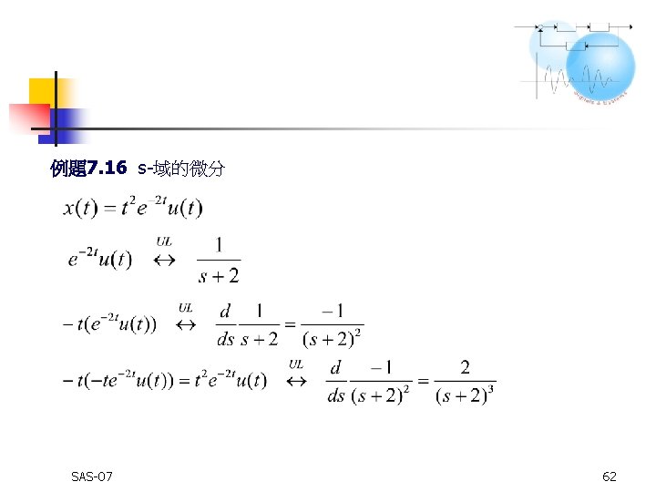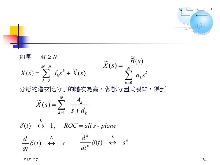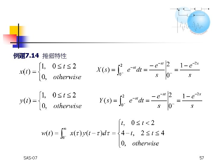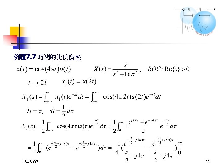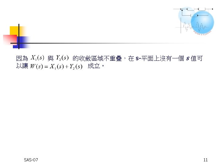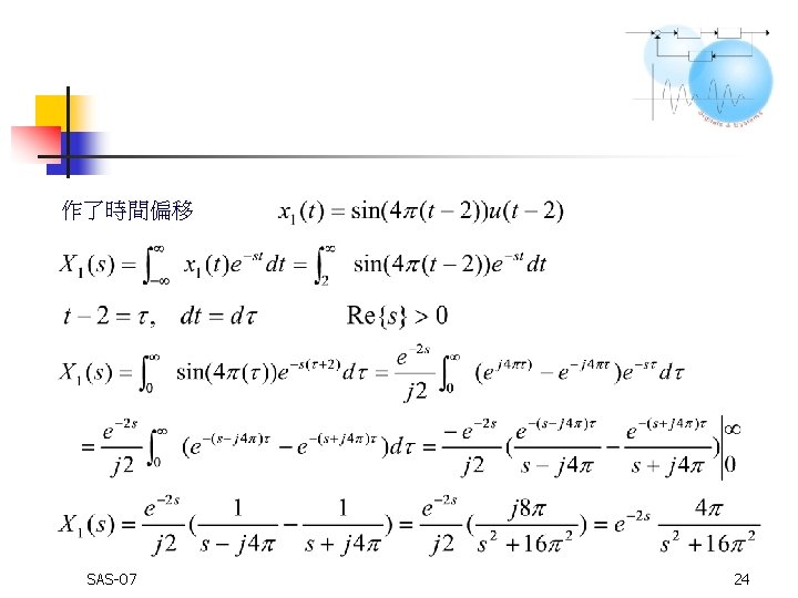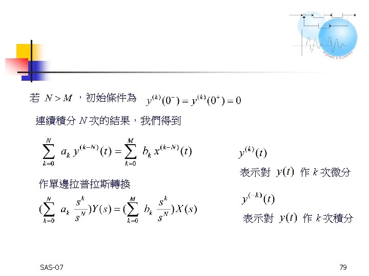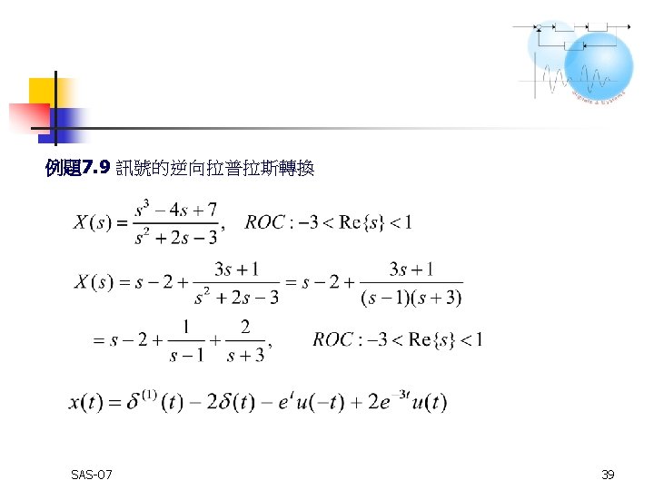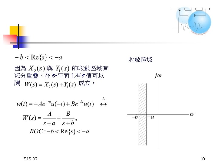 ssplane inverse Laplace transform SAS07 4 Region of Slides: 91 Download presentation s-平面(s-plane) 逆向拉普拉斯轉換(inverse Laplace transform) SAS-07 4 收斂區域(Region of convergence), ROC 例題7. 1 兩個極點的 函數收斂區域 SAS-07 7 7. 3 基本訊號的拉普拉斯轉換 (1)脈衝函數(Impulse function) SAS-07 (2)步進函數(Step function) 12 (3)逆向時間的步進函數 (Reversed step function) SAS-07 (4)指數函數(Exponential signal) 13 (5)逆向時間的指數函數(Reversed exponential signal) SAS-07 14 (6)弦波訊號(Sinewaves) 餘弦函數 SAS-07 16 SAS-07 28 (5)共軛特性(Conjugation) SAS-07 29 (7)對時間的微分 (Differentiation in time) SAS-07 (8) s- 域的微分 (Differentiation in s-domain) 31 (9)對時間的積分(Integration in time) SAS-07 32 SAS-07 35 SAS-07 43 SAS-07 44 SAS-07 45 SAS-07 47 SAS-07 48 SAS-07 49 (1)線性特性(Linearity) SAS-07 51 (2)時間偏移(Time shifting) 例題7. 12 時間偏移 SAS-07 52 SAS-07 53 (3) s-域偏移(Shifting in sdomain) SAS-07 例題7. 13 s-域偏移 54 (4)時間的比例調整(Time scaling) SAS-07 55 (5)捲迴特性(Convolution) SAS-07 56 SAS-07 58 (6)對時間的微分(Differentiation in time) SAS-07 59 (7) s-域微分 (Differentiation in s-domain) SAS-07 61 (8)對時間的積分(Integration in time) SAS-07 63 (9)初始值原理與終值原理(Initial value theorem and Final value theorem) SAS-07 65 例題7. 18 計算訊號的初始值 初始值原理(initial value theorem) 終值原理(final value theorem) SAS-07 66 SAS-07 68 解得 SAS-07 69 (3)電容(C) SAS-07 71 SAS-07 73 SAS-07 75 SAS-07 77 SAS-07 82 直接型第二式(direct form II ) SAS-07 83 SAS-07 85 SAS-07 86 SAS-07 87 SAS-07 88 SAS-07 90 狀態向量(state vector) 狀態方程式(state equation) 輸出方程式(output equation) SAS-07 91