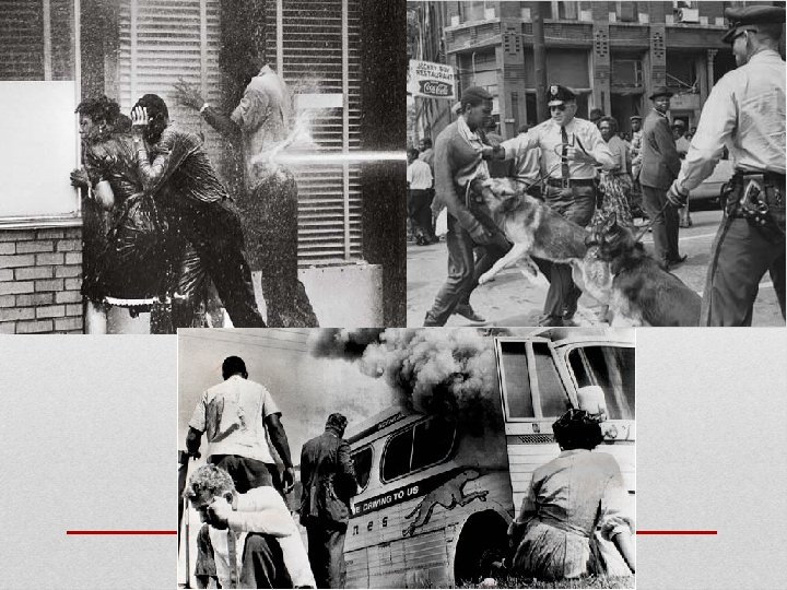 Civil Rights goes Primetime • The events of the Civil Rights Movement were also captured on video for people to see for themselves on television. • Nightly news programs provided a regular reminder of the on-going struggle for civil rights in the South. • Civil rights leaders used media coverage to illuminate their issues. • News footage of attack dogs biting demonstrators or fire hoses blasting children made for dramatic images and caused many viewers to question the equity of segregation laws. • One of the most dramatic events broadcast was the Alabama State Patrol's attack of the Selma Marchers, which was shown right before a television drama on the Nuremberg War Crimes Trial. Dr. Martin Luther King Jr. 's "I Have a Dream“ speech was broadcast live to a nation-wide audience in 1963, bringing more awareness to the social issue of segregation that had yet to be resolved.