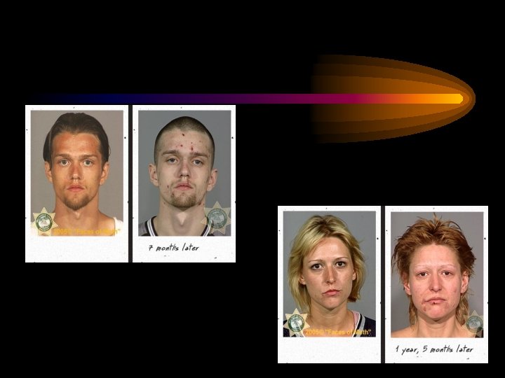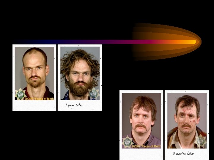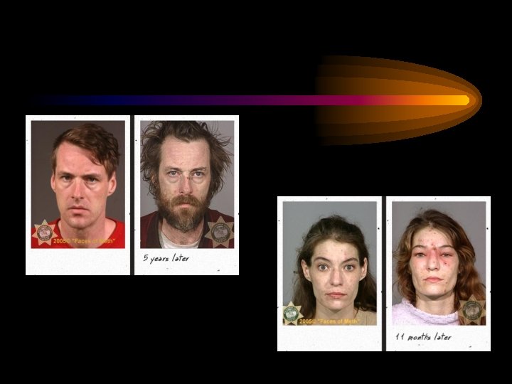 • Meth affects your body: – Increases the heart rate, blood pressure, and risk of stroke. – Creates a false sense of energy – pushes the body faster and further that it’s meant to go. – Can cause irreversible damage to blood vessels in the brain.