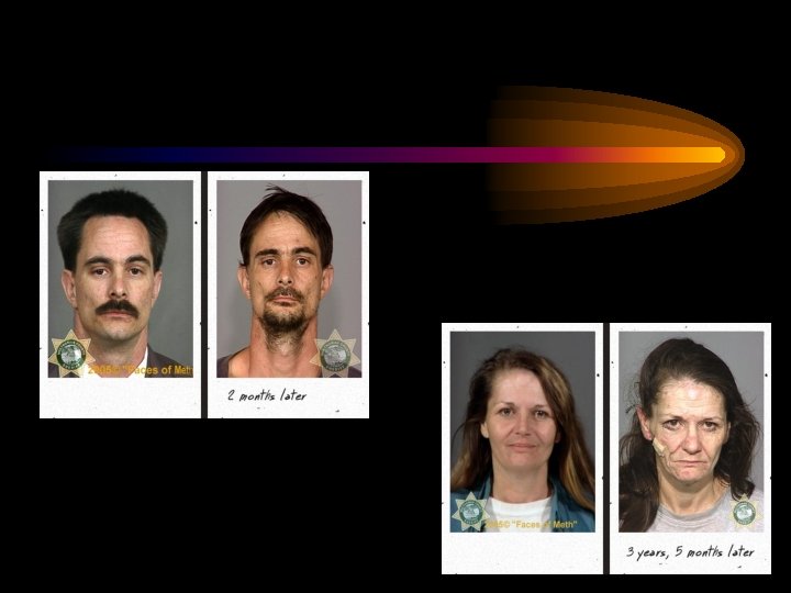 Methamphetamine • Slang Terms: – – – – – Speed Meth Crystal Crank Tweek Go-Fast Ice Glass Uppers Black Beauties