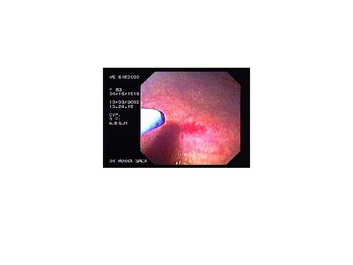 n n n Portal HT > 12 mm. Hg (kanama eşik değeri) ‘Erozyon’dan çok ‘Explosion’ teorisi geçerli Varis çapı, duvar kalınlığı İntraverisiyel basınç Endoskopik işaretler (fokal zayıf alanlar): n n n Kırmızı kamçı izi, Kiraz kırmızısı noktalar, red-color sign, (mikrotelenjiektaziler) Hemokistik noktalar: yüzeyde sakküler anevrizmal projeksiyonlar Beyaz meme-başı bulgusu: platelet fibrin plak-yeni kanama işareti Aspirin/NSAID veya alkol kullanımı Bakteryel enfeksiyonlar Child skoru. . (koagulopati, fibrinoliz)