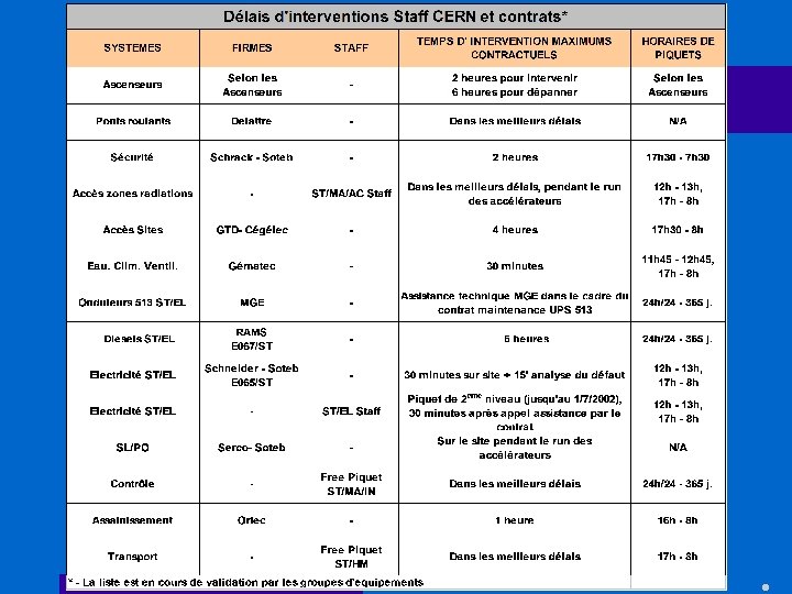Major ST Events report • Approbation du ST/MO/TC/RA 2002 -27 « incident sur les tours 863 » Action en cours ST/CV: amélioration de la maintenance préventive Séance de formation du contractant programmée 3éme semaine de février Réflexion sur les services de piquet (voir slide suivant) • 30/1/02 Panne du système d'accès SPS en cours de rédaction Défaut système supervision et acquisition données ZORA 2 heures pour réparation