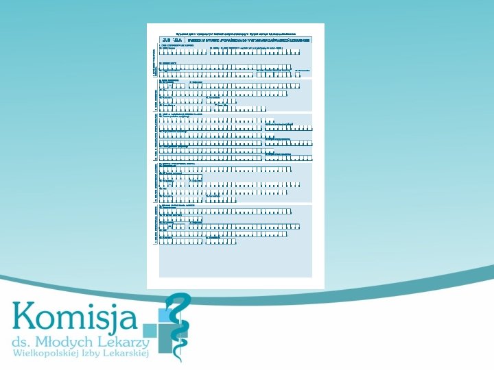 PRAWO WYKONYWANIA ZAWODU Po zakończeniu stażu podyplomowego należy do WILu dostarczyć: → Wniosek o przyznanie PWZ (W-2), który znajduje się na stronie www. wil. org. pl w zakładce Repozytorium → Dokumenty „Rejestr lekarzy” → Wypełnioną kartę stażu podyplomowego → OPWZ → Kopię dowodu osobistego → Kopia decyzji o nadaniu NIP → Świadectwo złożenia LEKu → Orzeczenie o stanie zdrowia
