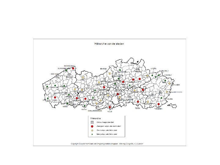 Morfologie en ruimtelijke ontwikkeling van steden • • • Ontstaan van steden Stedelijke ontwikkeling en BREVER-wet Morfologie van stad en stadsgewest Evolutie van de bevolking in het stadsgewest Evolutie van werkgelegenheid