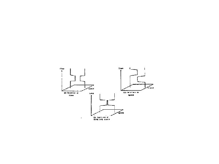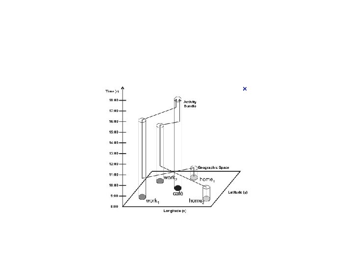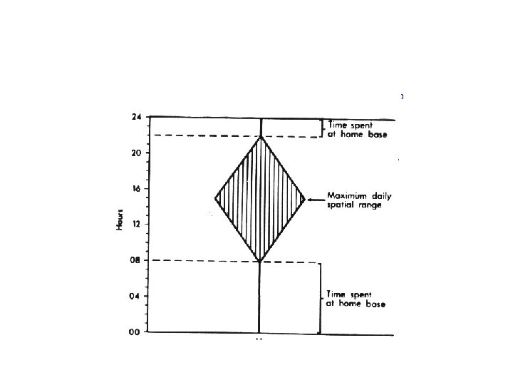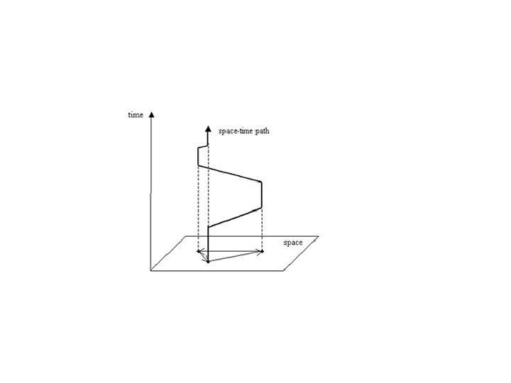 Tijd-Ruimtegeografie • Verplaatsingen in tijd-ruimte diagram • Mens is gebonden aan beperkingen/restricites – Fysieke beperkingen – “Koppelbeperkingen” – Zeggenschapsbeperkingen