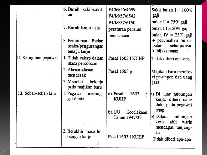Tabel sebab akibat dan dasar hukum pemberhentian pegawai
