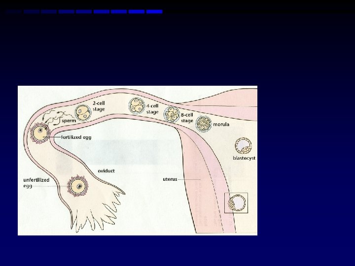 1. 5 – 3 Days Post-Ovulation Development Picture • Cleavage of zygote-picture • First cell divisions repeat approximately every 20 hours • When cell division creates about 16 cells, the mass is called a MORULA • Morula leaves oviduct to uterus 3 -4 days after fertilization