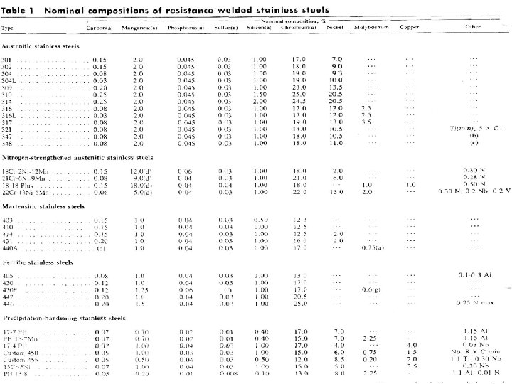 Increased Cr & Mo promotes Embrittlement • 825 F Sigma Phase (Fe. Cr) precipitation embrittlement • 885 F Embrittlement (decomposition of iron-chromium ferrite) • 1560 F Chi Phase (Fe 36 Cr 12 Mo 10) precipitation embrittlement Because of the Embrittlement, Resistance Welding is Usually Not Done on These Steels