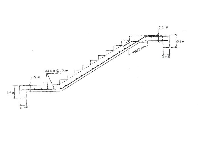 Cantilever stairs (Example) Design a cantilever straight flight stair in a residential building L. L = 3 k. N/m 2 Covering Material = 0. 5 k. N/m The riser are 16 cm and goings are 30 cm