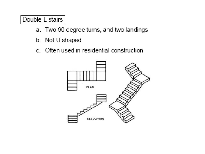 Longitudinal – Supported stairs (Example) Design a U- stair in a residential building L. L = 3 k. N/m 2 Covering Material = 2 k. N/m 2 The riser are 16 cm and goings are 30 cm