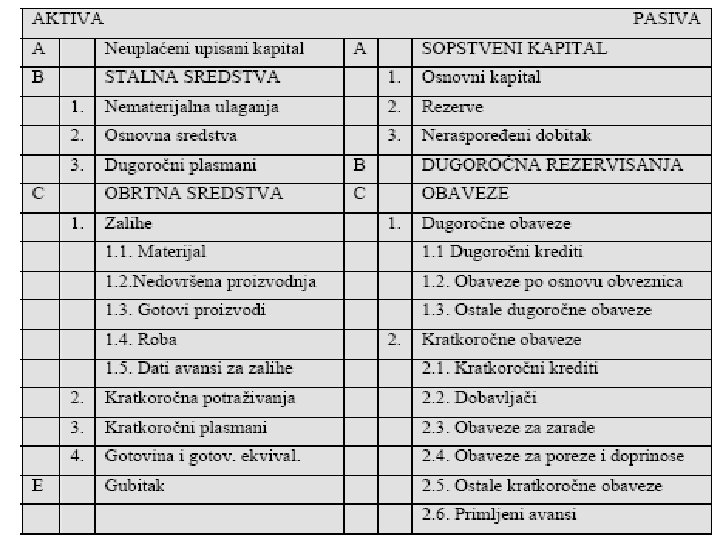 • Stalna sredstva su dugoročno vezana za preduzeće i njegovo poslovanje. Dele se na: • Nematerijalna ulaganja • Dugoročne finansijske plasmane • Osnovna sredstva (Nekretnine, postrojenja i oprema).