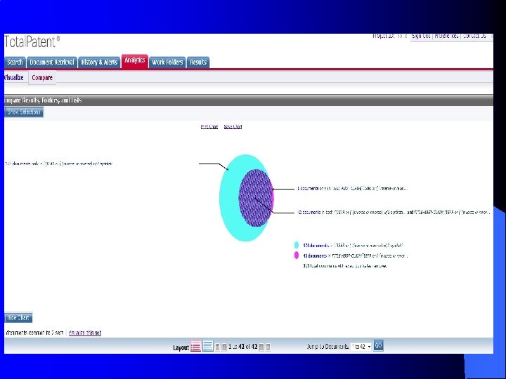 Clearance : l Generate a table of results which includes Legal Status (Derwent, Lexis) l Results may lead to : – A patent for the inventor – An invalidity search for a patent potentially being infringed l More Fun!