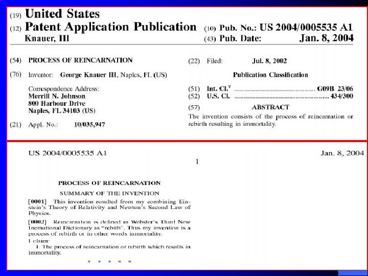 Ab Initio Considerations Internet research may yield an inventor l Patent research may yield a research paper l Unimportant patents/apps may contain references worthy of forward/backward searching l Always do forward/backward search on the best references l
