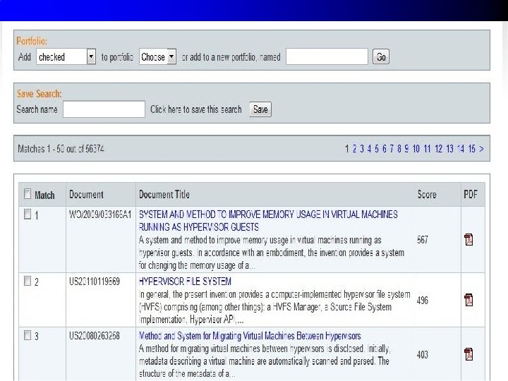 Considerations : Allow extended date sorting : priority date (US and Foreign), filing date, etc. l Should allow literal searching l – Return application # for “ 12/407, 252” – Can use PAIR l Should allow original classification searching