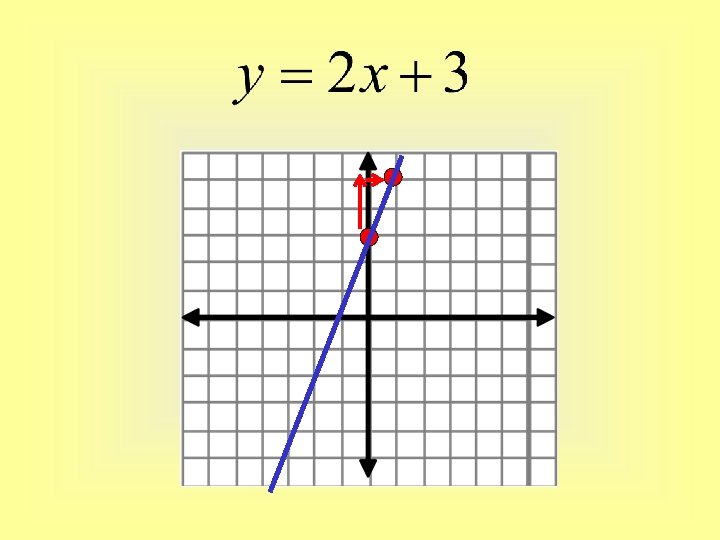 Graph: Step 1: y=mx+b Step 2: slope = 2 y-intercept = 3 Step 3: plot the y-intercept on a graph Step 4: apply the slope