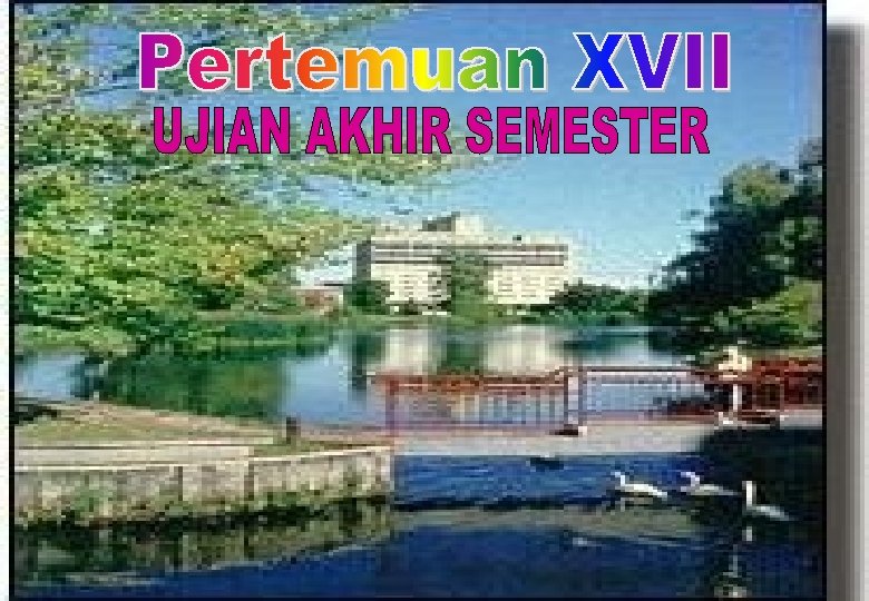 Evaluasi Hasil Belajar: Keberhasilan mahasiswa dalam perkuliahan ini ditentukan oleh prestasi yang bersangkutan dalam : l 1. Kehadiran sebanyak 80% di kelas. l 2. Partisipasi Kegiatan Kelas. l 4. Tugas-Tugas Harian. l 5. Ujian Tengah Semester. l 6. Ujian Akhir Semester.