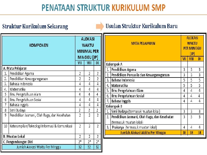 Kurikulum 2013 Tingkat SMP Usulan Rancangan Struktur Kurikulum 2013 Penataan Struktur Kurikulum 2013