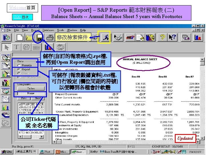 ![Standard & Poor’s Compustat Research Insight-RI 財務數據分析軟體 首頁說明 ~ [附錄] — • • {第一種}: Standard & Poor’s Compustat Research Insight-RI 財務數據分析軟體 首頁說明 ~ [附錄] — • • {第一種}:](https://slidetodoc.com/presentation_image_h2/9d15bde85ac971007aa9b716fe0dd2f9/image-4.jpg)