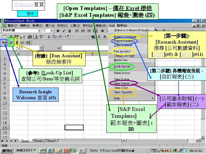 ![Welcome首頁 TOC 目次 [Open Templates] – [S&P Excel Templates] 報表+圖表 (四) 在Excel 整合操作 選擇公司 Welcome首頁 TOC 目次 [Open Templates] – [S&P Excel Templates] 報表+圖表 (四) 在Excel 整合操作 選擇公司](https://slidetodoc.com/presentation_image_h2/9d15bde85ac971007aa9b716fe0dd2f9/image-27.jpg)