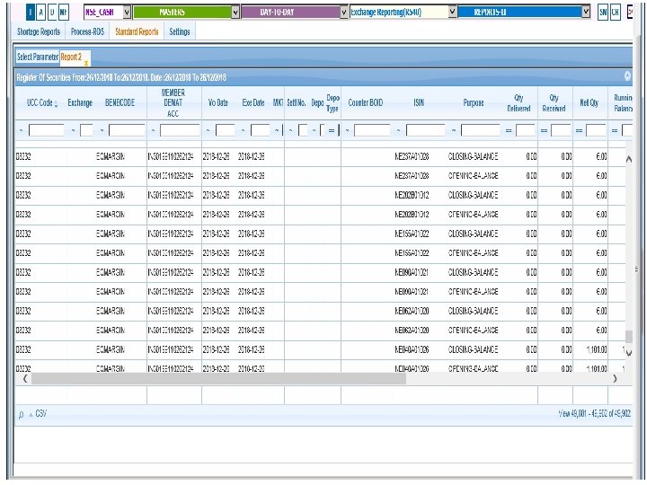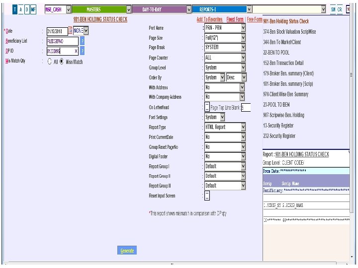 Select Holding Statement (Exchange Upload) Use Export Type As Export To Generate Upload File And Screen To View Data