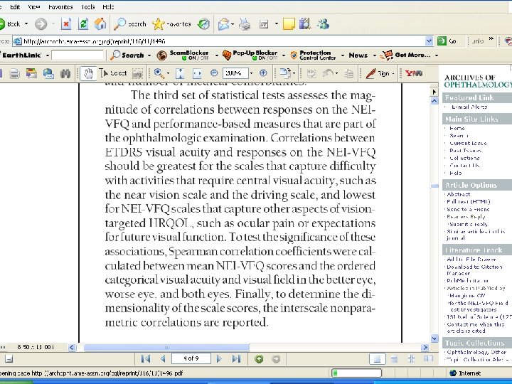 Evaluating Hypothesized Associations Scale Hypotheses Results Near vision ++ 0. 71 Driving + 0. 43 Ocular pain ~ 0. 07 ++ = 0. 50 or above; + = 0. 20 -0. 49, ~ = < 0. 20