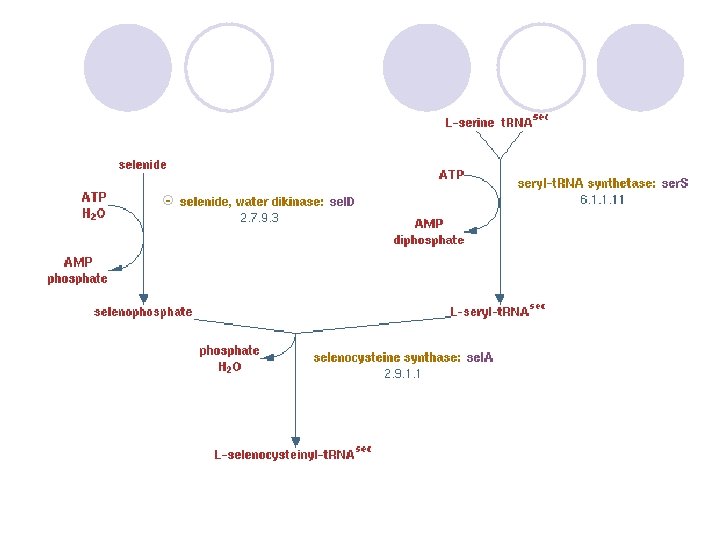 Selenosistein Serin amino asiti’nin selenyum içeren türevidir. Glutatyon peroksidaz, glisin redüktaz, thioredoksin redüktaz gibi bazı enzimlerde ve bazı hidrojenaz enzimlerde ve diğer birçok proteinde bulunur. Bir veya birden daha çok selenosistein içeren proteinlere selenoprotein’ler adı verilir. l UGA normalde bir bitim (stop) kodonudur. Fakat, UGA’nin selenosistein için kullanıldığı proteinlerin m. RNA’sı farklıdır. m. RNA’da SECIS (SEleno. Cysteine Insertion Sequence) elementi varsa ribozom UGA’yi bitim kodonu olarak algılamaz. Bunun yerine selenosisteinilt. RNA’daki selenosisteini proteinin yapısına dahil eder. l