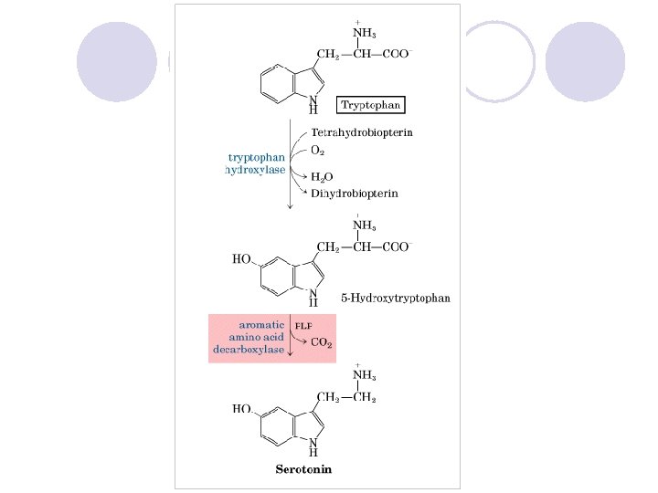 5 -hidroksitriptofan l Triptofan amino asidinden sentellenir. Seretonin’in öncül maddesidir. Serotonin, monoamin bir transmitterdir. Merkezi sinir sistemindeki nöronlar ve gastrointestinal bölgedeki enterocromafin hücreleri tarafından sentezlenir. Ruh halinin, açlığın, vücut sıcaklığının, uykunun ve metabolizmanın düzenlenmesinde görevler yapar