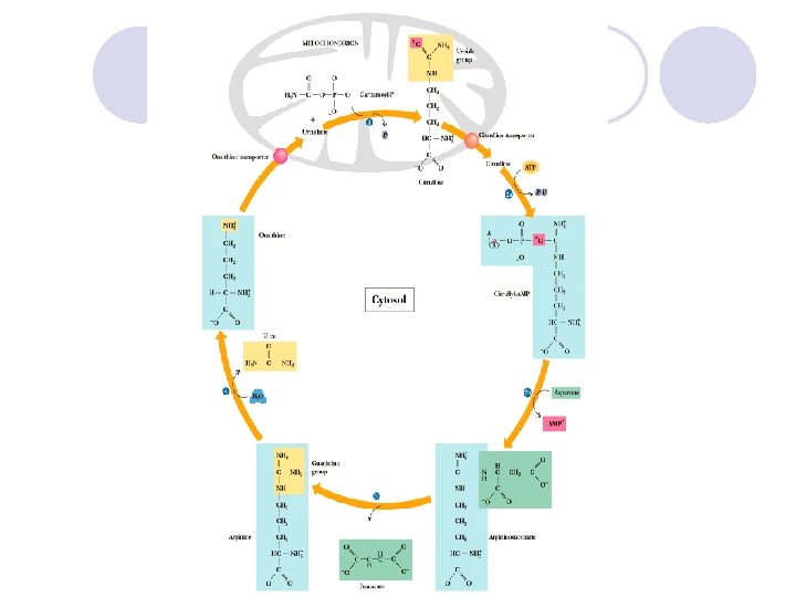 Ornitin, Sitrulin ve Arjinino süksinik asit üre döngüsünde ortaya çıkan ara metabolitlerdir. Ayrıca sitrulin L-arginin ve oksijenden, oldukça karmaşık bir tepkime sonucu önemli bir serbest radikal olan nitrik oksit (NO ) oluşurken de sentezlenmektedir. Ayrıca ornitin spermin ve spermidin biyosentezin de kullanılır