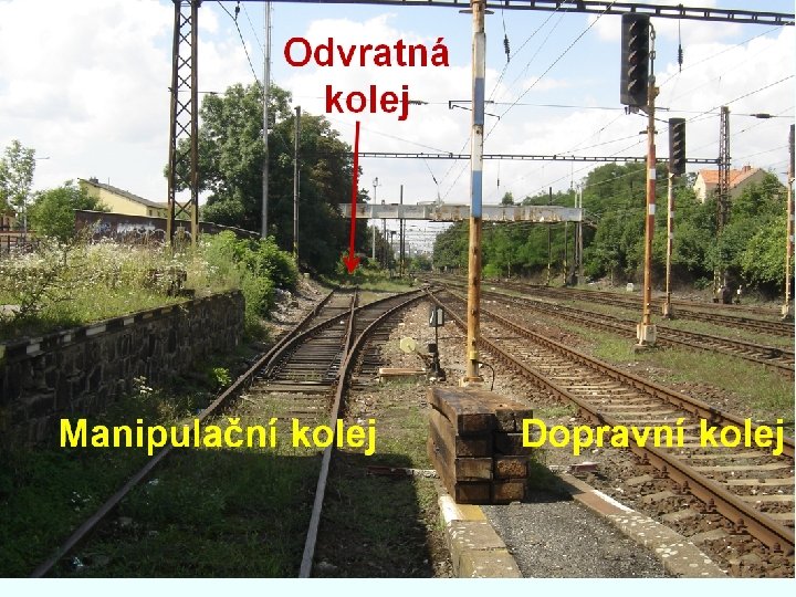 Staniční koleje • manipulační kolej – kolej určená pro manipulaci s vozidly – probíhá tam zpravidla nakládka a vykládka vozů a posun • pro označení polohy vpravo nebo vlevo je určující směr od začátku ke konci trati – uvedeno v TTP (Tabulka traťových poměrů)