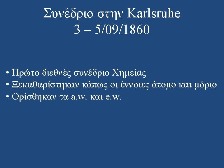 Stanislao Cannizzaro 1826 – 1910 • Συγκέντρωσε την εργασία του Avogadro • “…The different quantities of the same element contained in different molecules are all whole multiples of one and the same quantity, which always being entire, has the right to be called an atom. . . ”